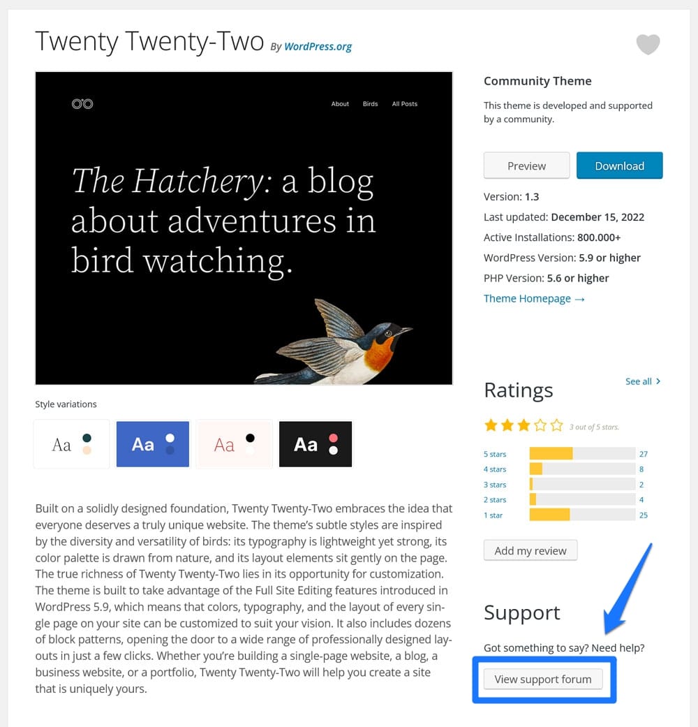 By the way, if you are looking for help with specific themes or plugins, those have their own support sections where you can talk directly to the developers. You get there via the View support forum buttons on the plugin and theme pages respectively.