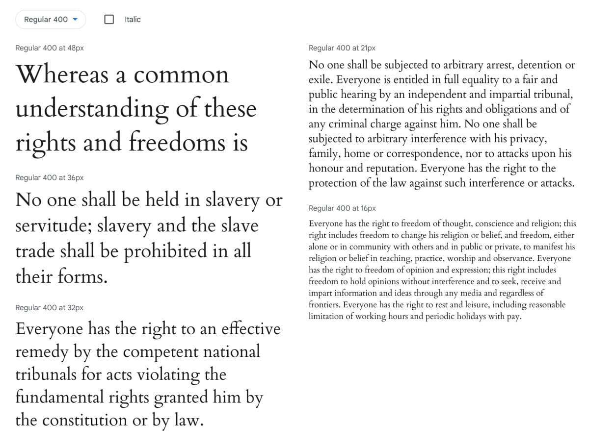 As we have seen earlier in the style variations, the Twenty Twenty-Four theme likes to play a lot with typography. One of the central pillars here, which is responsible for the sophisticated look of the default style, is the Cardo font. It’s an Old Style serif typeface that adds a bit of refinement to the site’s appearance.