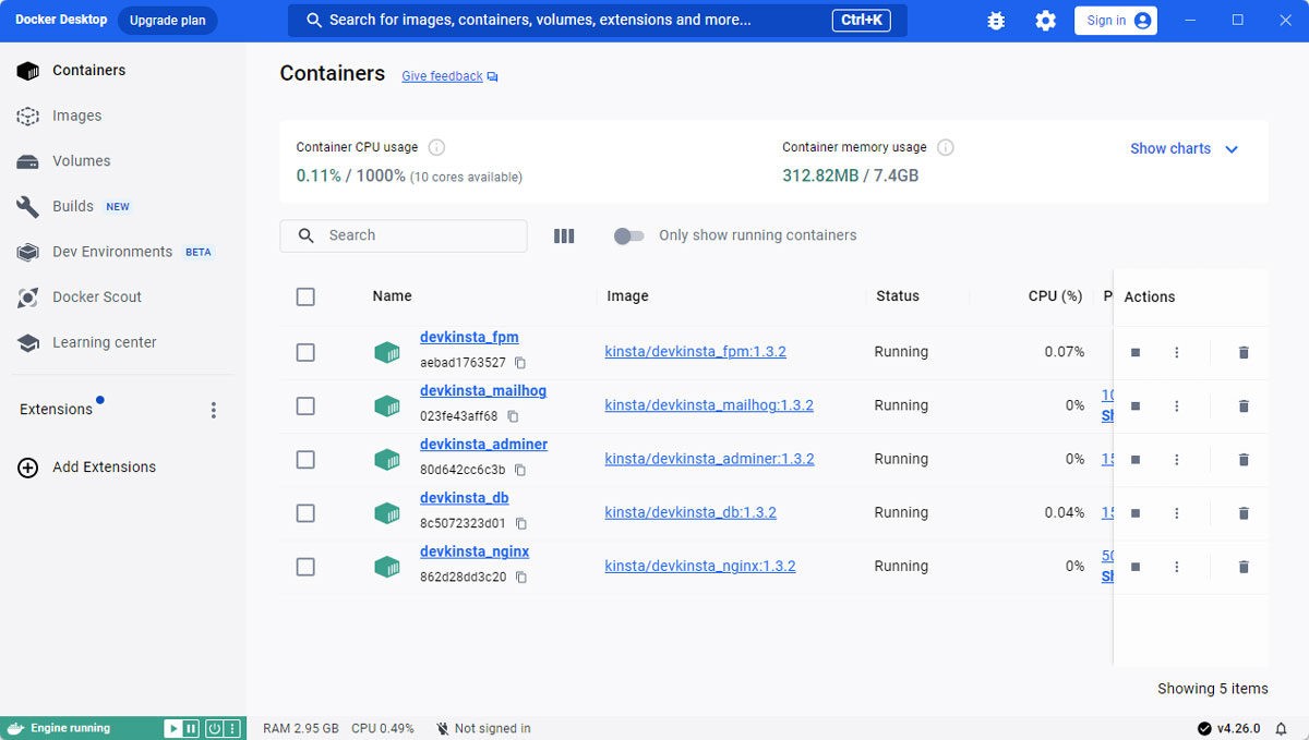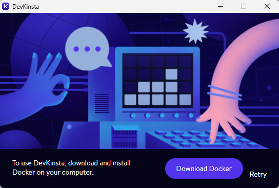 Docker is an application that allows you to build containers — virtual environments — for web applications and websites to run in. While Local has similar functionality built in, DevKinsta outsorces it to another program.