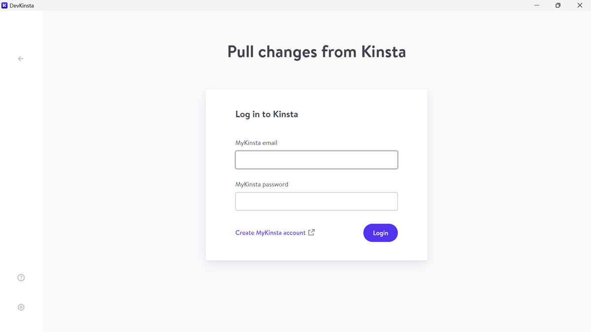 Simply click and choose whether to push or pull. DevKinsta will ask you for credentials for your Kinsta account.
