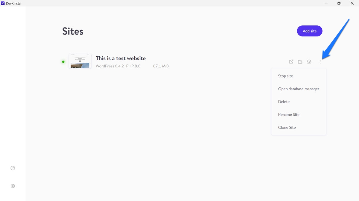 It’s important to note that you a lot of these options are also available when right-clicking on your site in the list on the left or the three-dot icon next to the site name.